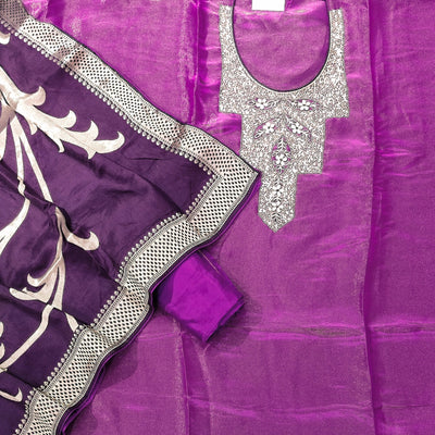 Purple Base Handwork On Kurta With Wine Dupatta Full Suits Set