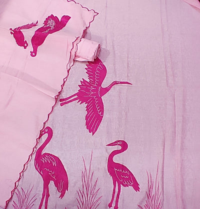Light Pink Base Magenta Applique Work On Kurta And Dupatta Full Suits Set