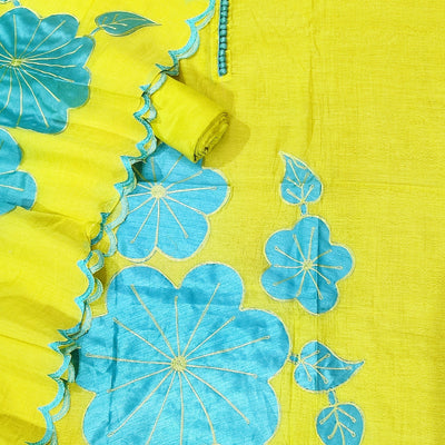 Mint Green Base Yellow Applique Work On Kurta And Dupatta Full Suits Set