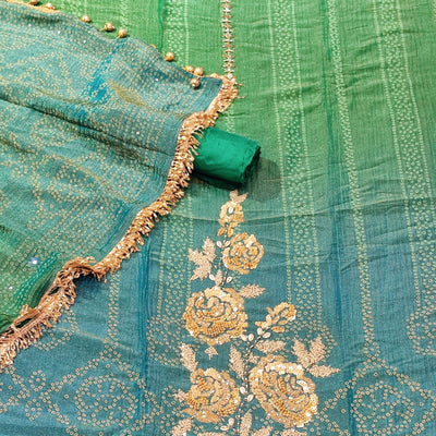 Green And Blue Base Handwork On Kurta With Dupatta Full Suits Set