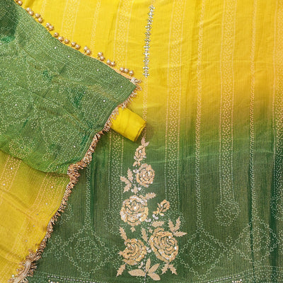 Parrot Green And Dark Heena Green Base Handwork On Kurta With Dupatta Full Suits Set