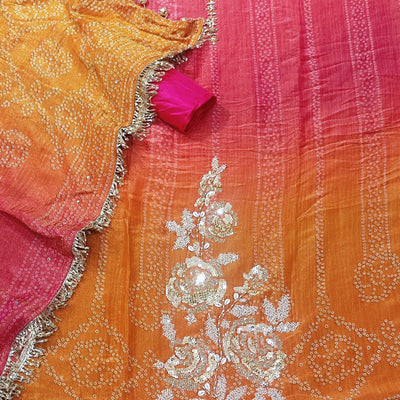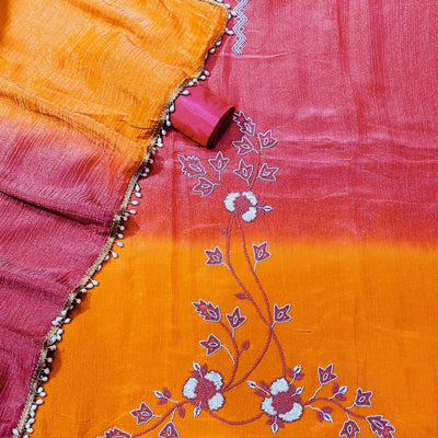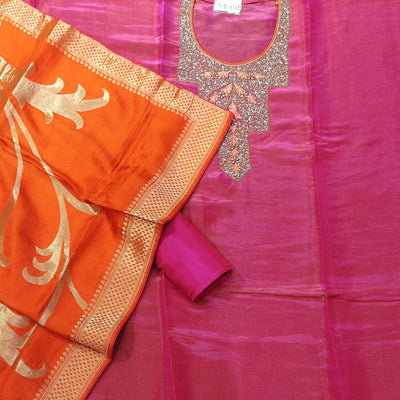 Magenta And Orange Base Handwork On Kurta With Dupatta Full Suits Set