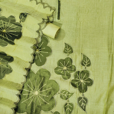 Light Green Base Heena Green Applique Work On Kurta And Dupatta Full Suits Set
