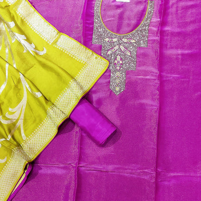 Pink Base Handwork On Kurta With Green Dupatta Full Suits Set