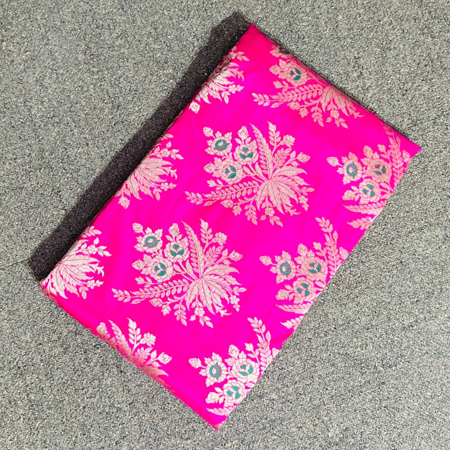 Pink Base With Golden Pure Zari Butta With Meena On Pure Katan Silk