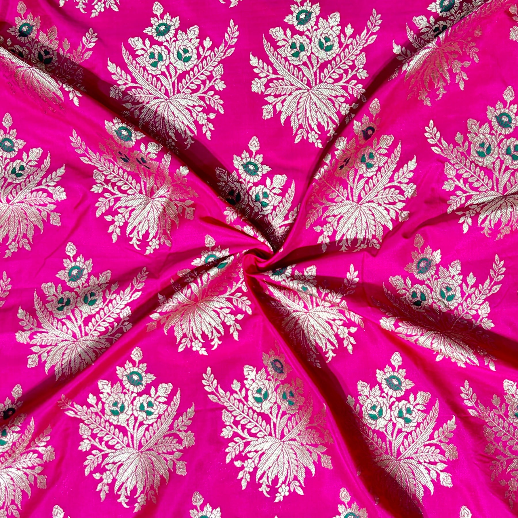 Pure Katan Silk is directly from silk cocoons with minimal processing, which gives it a slightly coarse weave and a soft, matte sheen. It feels luxurious yet substantial, with natural slubs often visible. It drapes well and holds stiffness enough for elaborate ornamentation without being stiff.