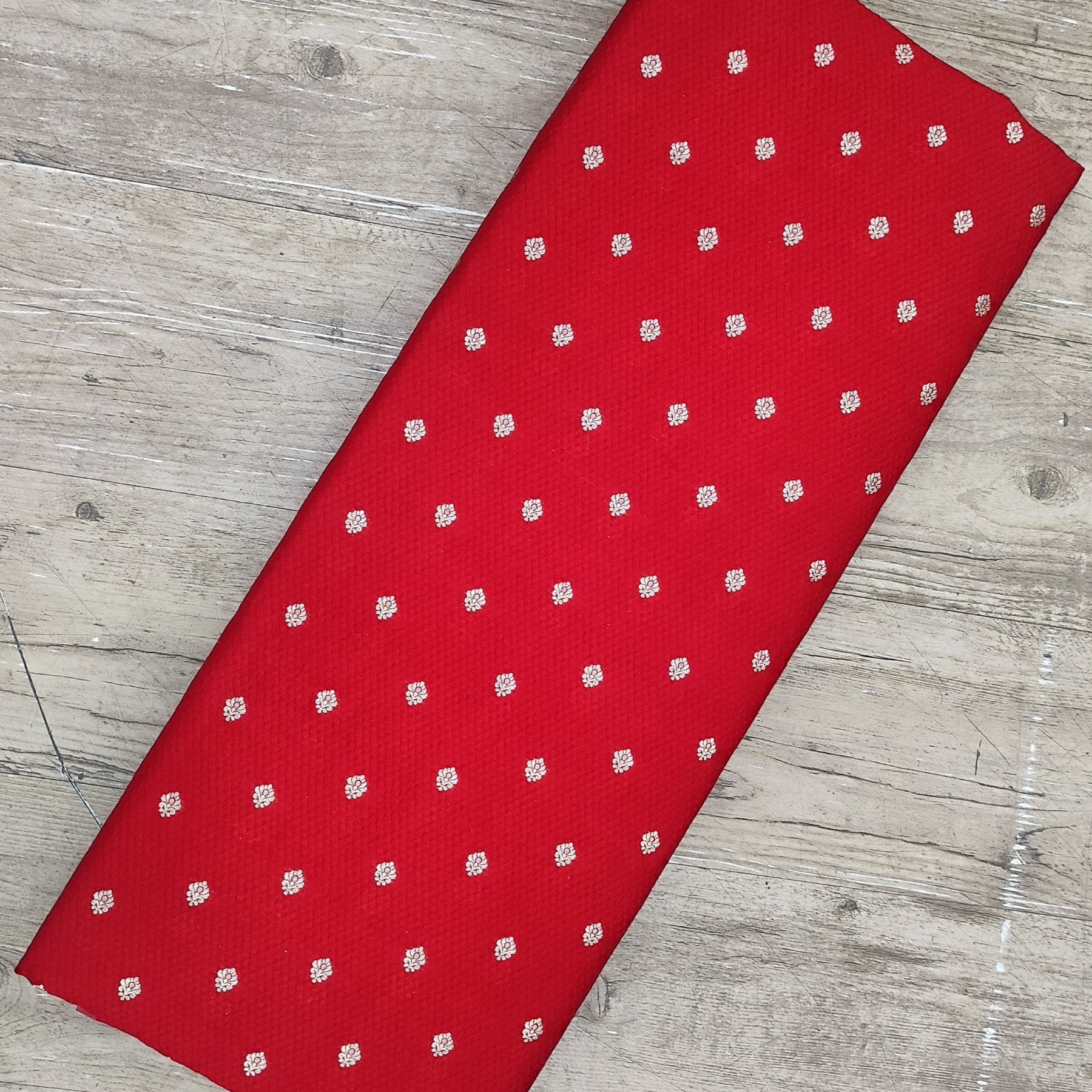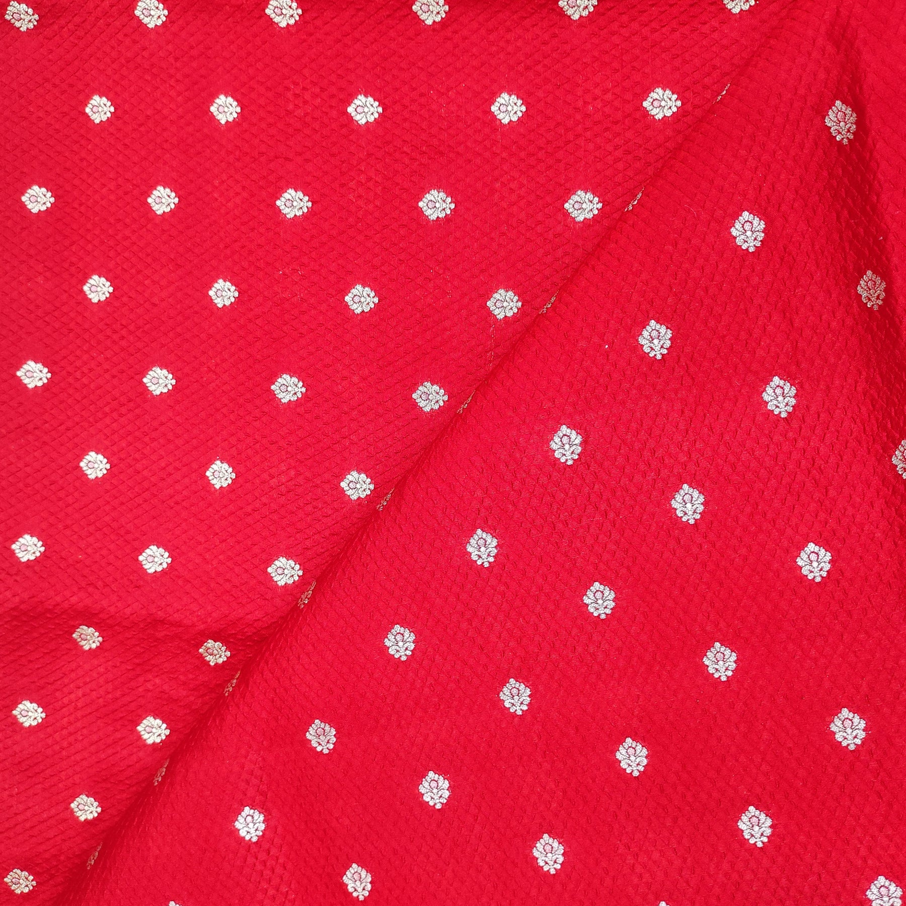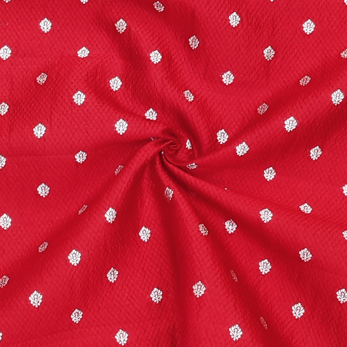 Red Base With Golden Pure Zari Butta On Pure Crushed Silk