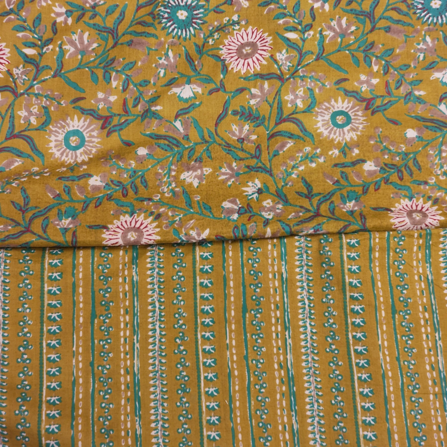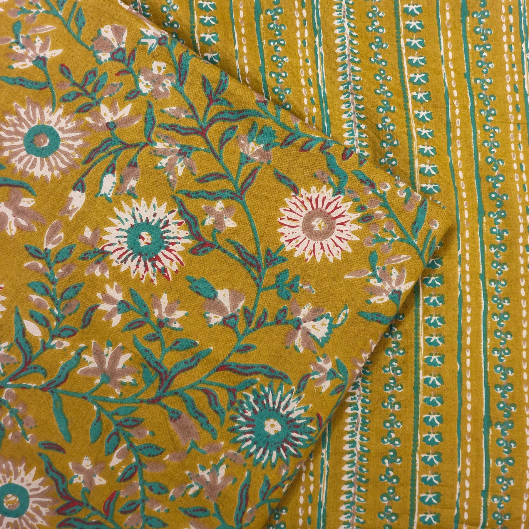 Cotton handblock print fabrics are often used for making garments, scarves, home decor items like cushion covers, and more. It’s a favorite for those who appreciate craftsmanship and vibrant, organic patterns.