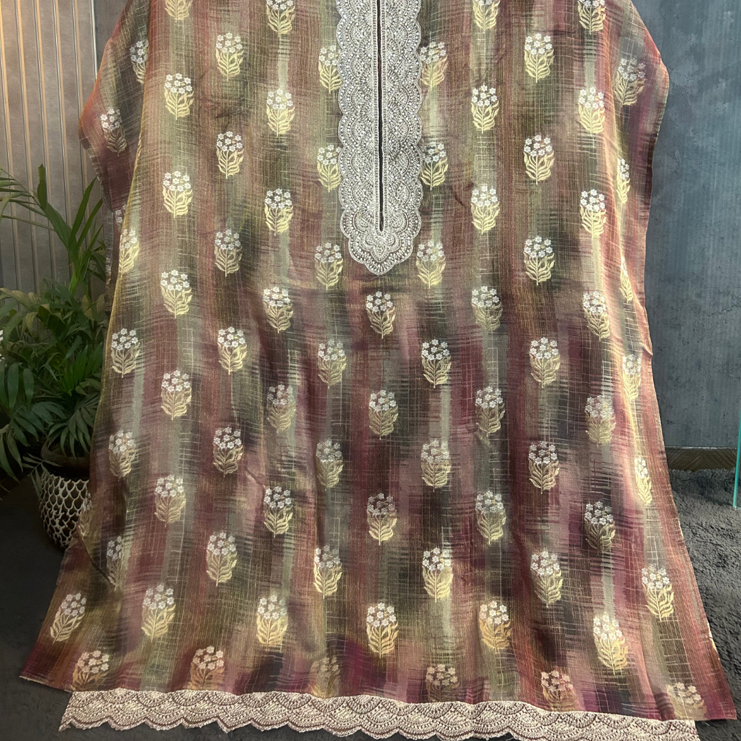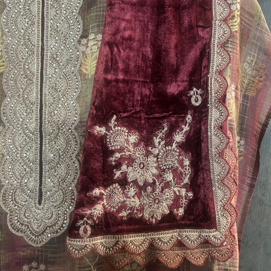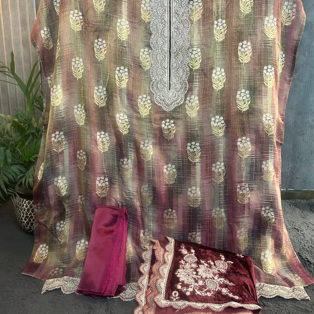 Banarasi Georgette Tissue Kurta Set with Sequin Thread Work & Velvet Dupatta