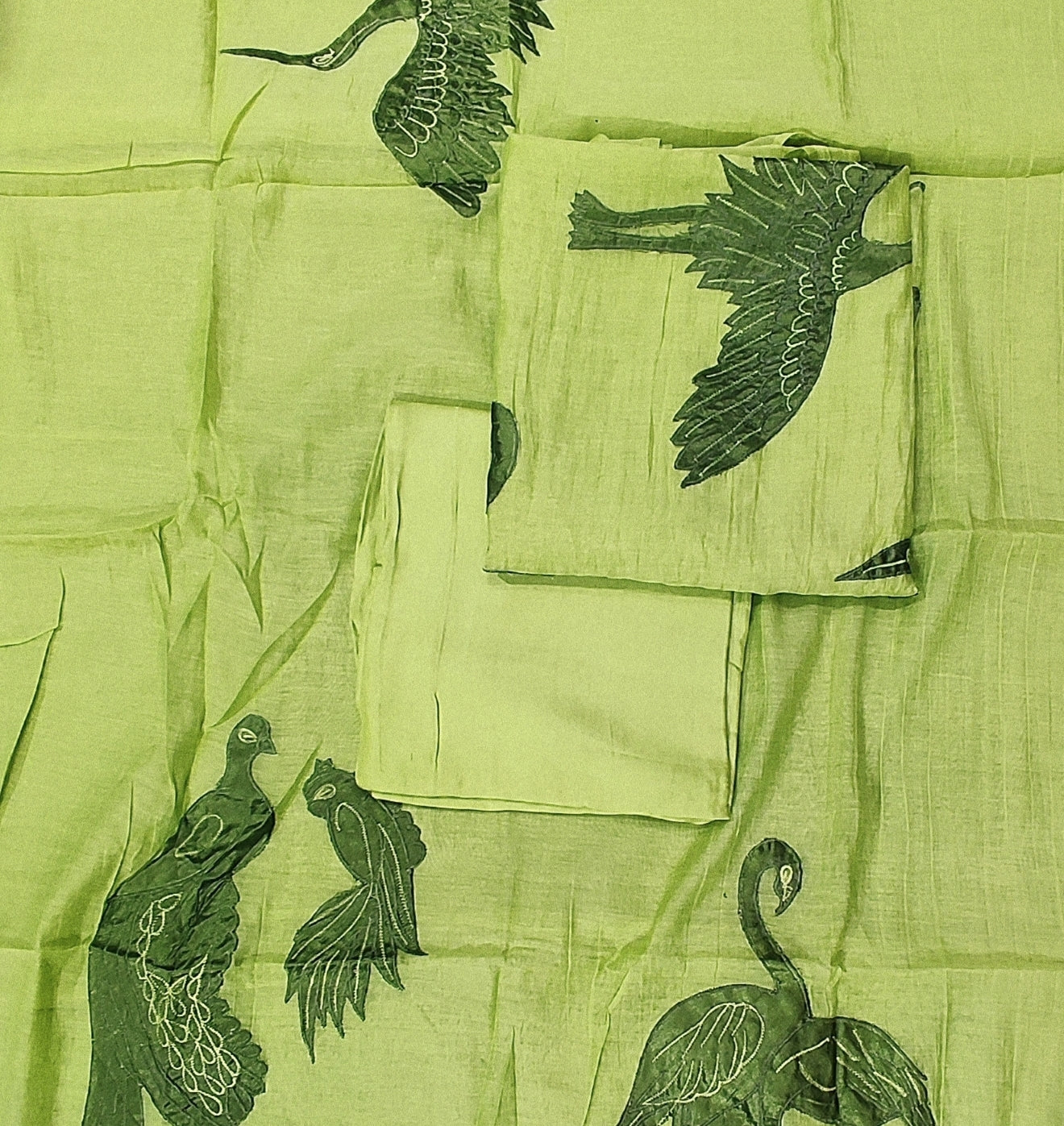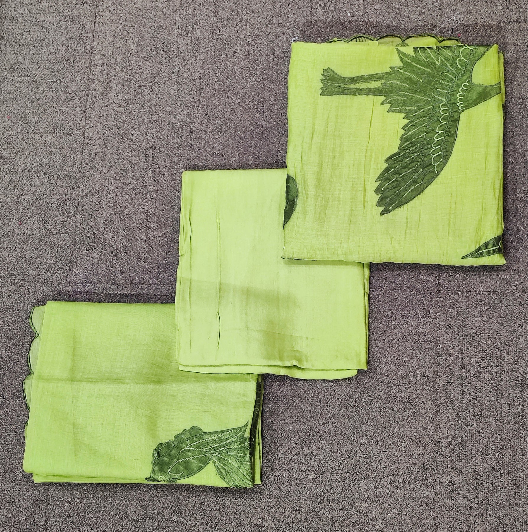 Florescent Green Base Dark Henna Green Applique Work On Kurta And Dupatta Full Suits Set