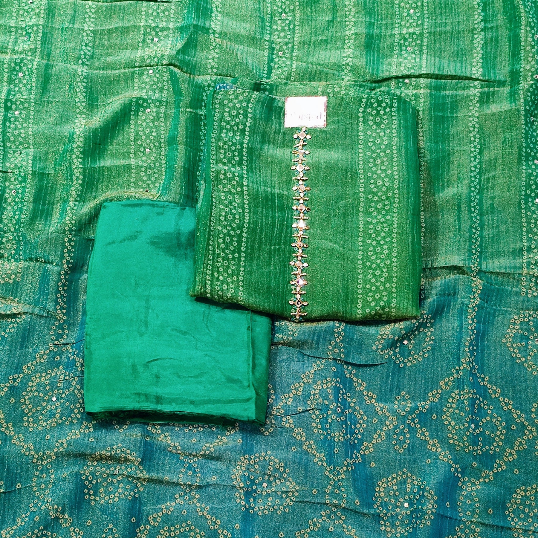 Green And Blue Base Handwork On Kurta With Dupatta Full Suits Set