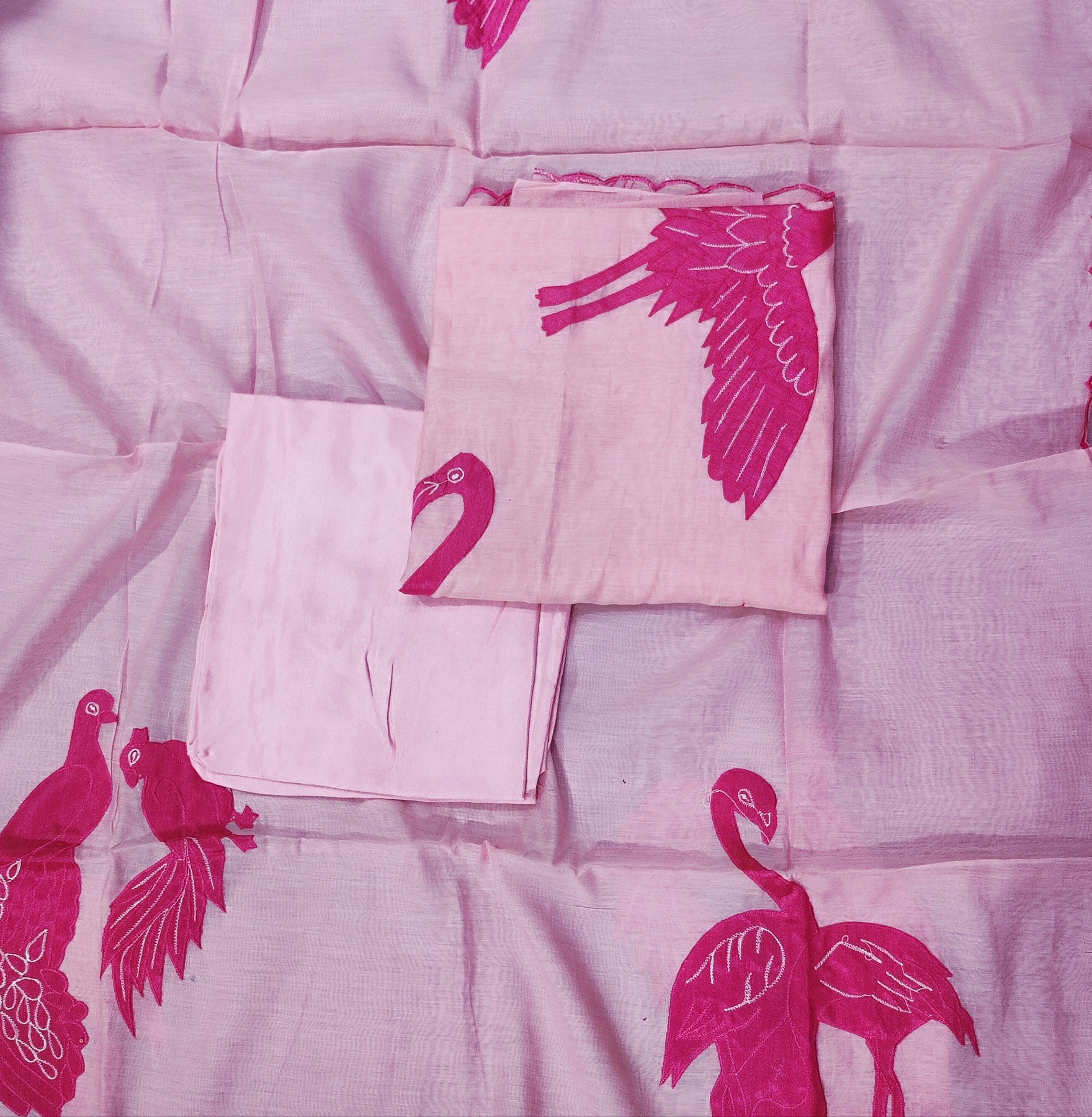 Light Pink Base Magenta Applique Work On Kurta And Dupatta Full Suits Set