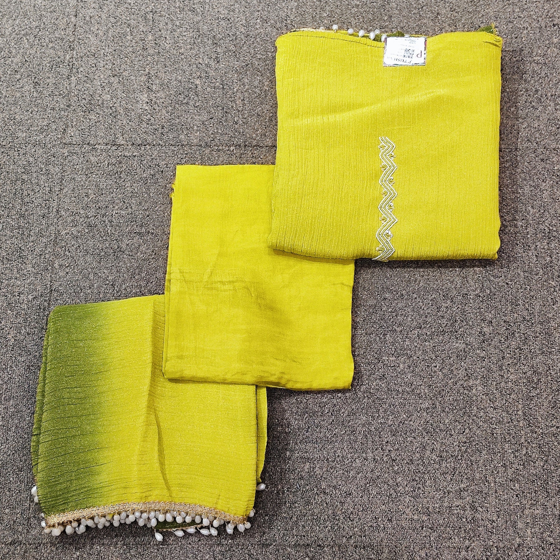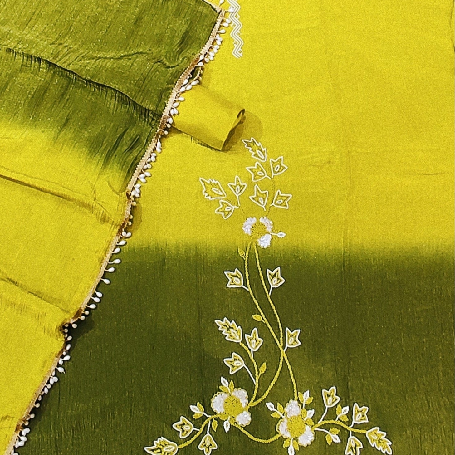 Parrot Green And Dark Heena Green Base Handwork On Kurta With Dupatta Full Suits Set
