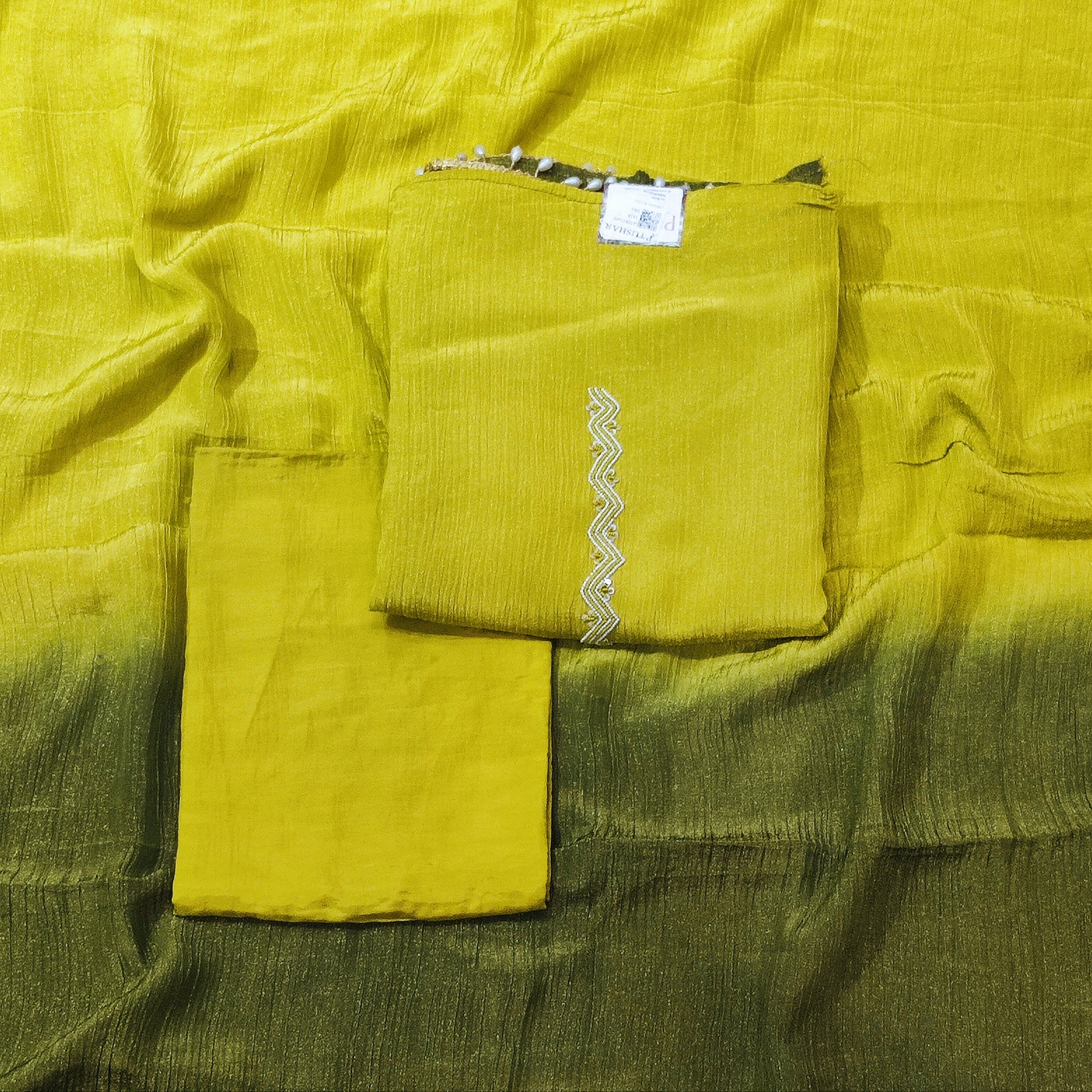 Regular price Rs. 6,275.00The word Elegance & Classy are the synonyms of Crushed Tissue fabrics. Yes !! you read it right. The Paisley presenting you the most loved and appreciated fabrics in a form of complete suit sets With delicate Embroidery embroidery.