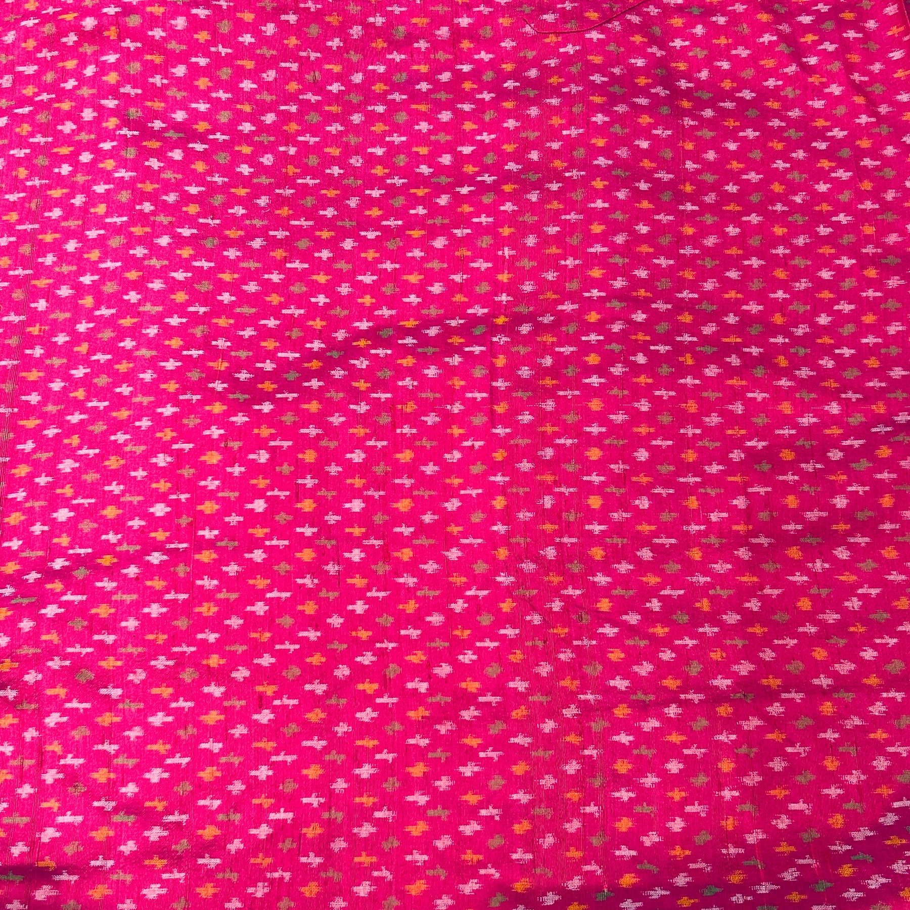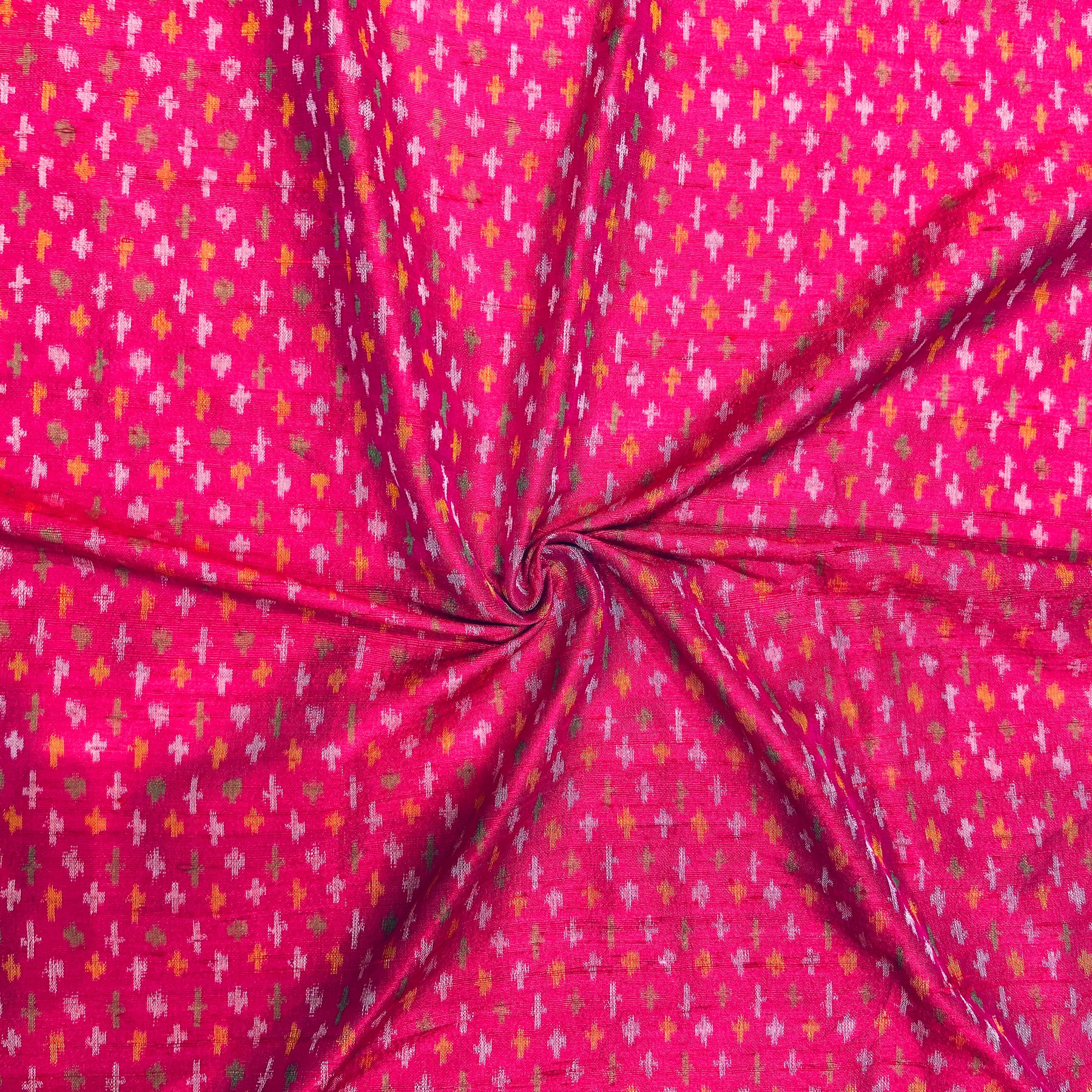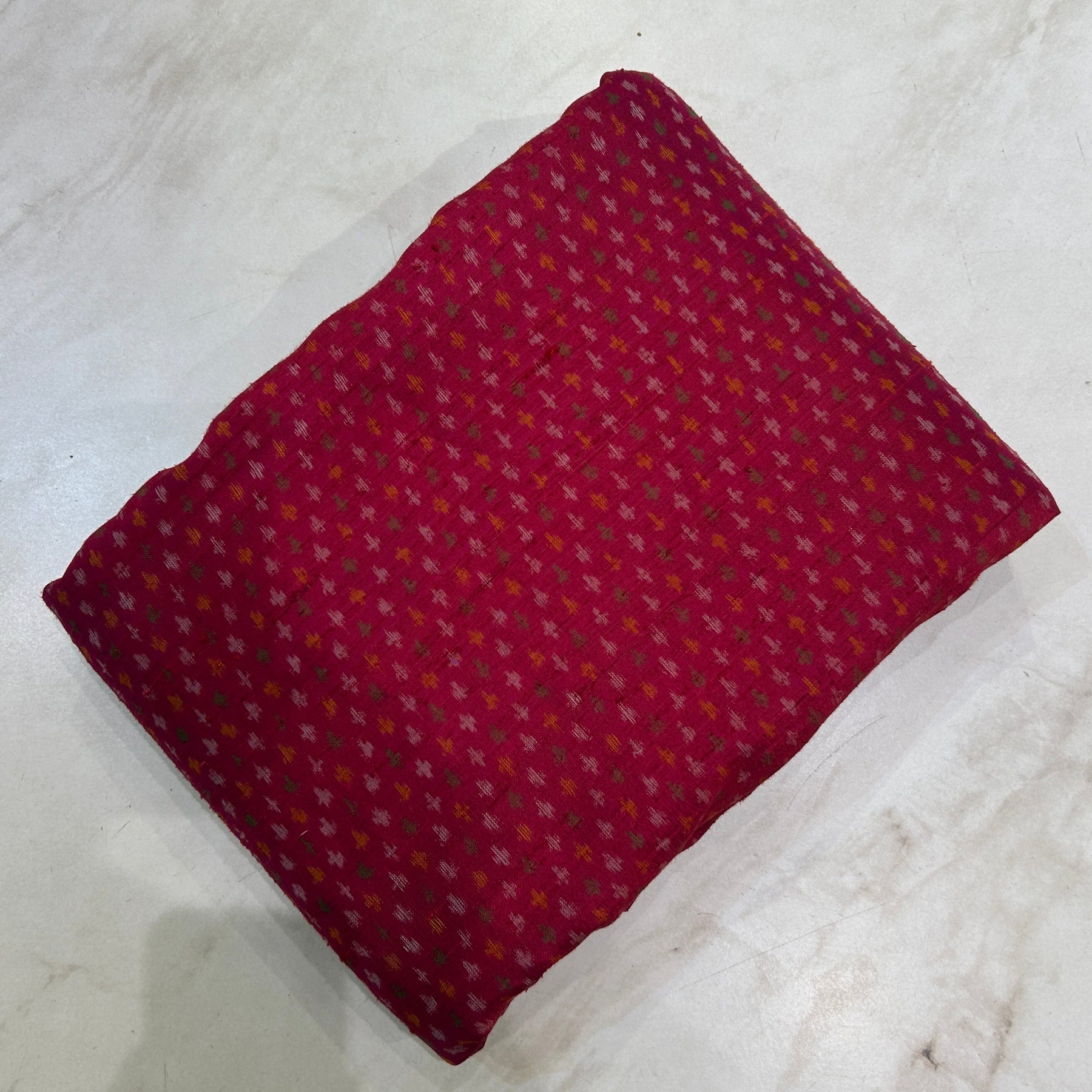 Cherry Red Base Ikat Weave On Pure Raw Silk Fabric