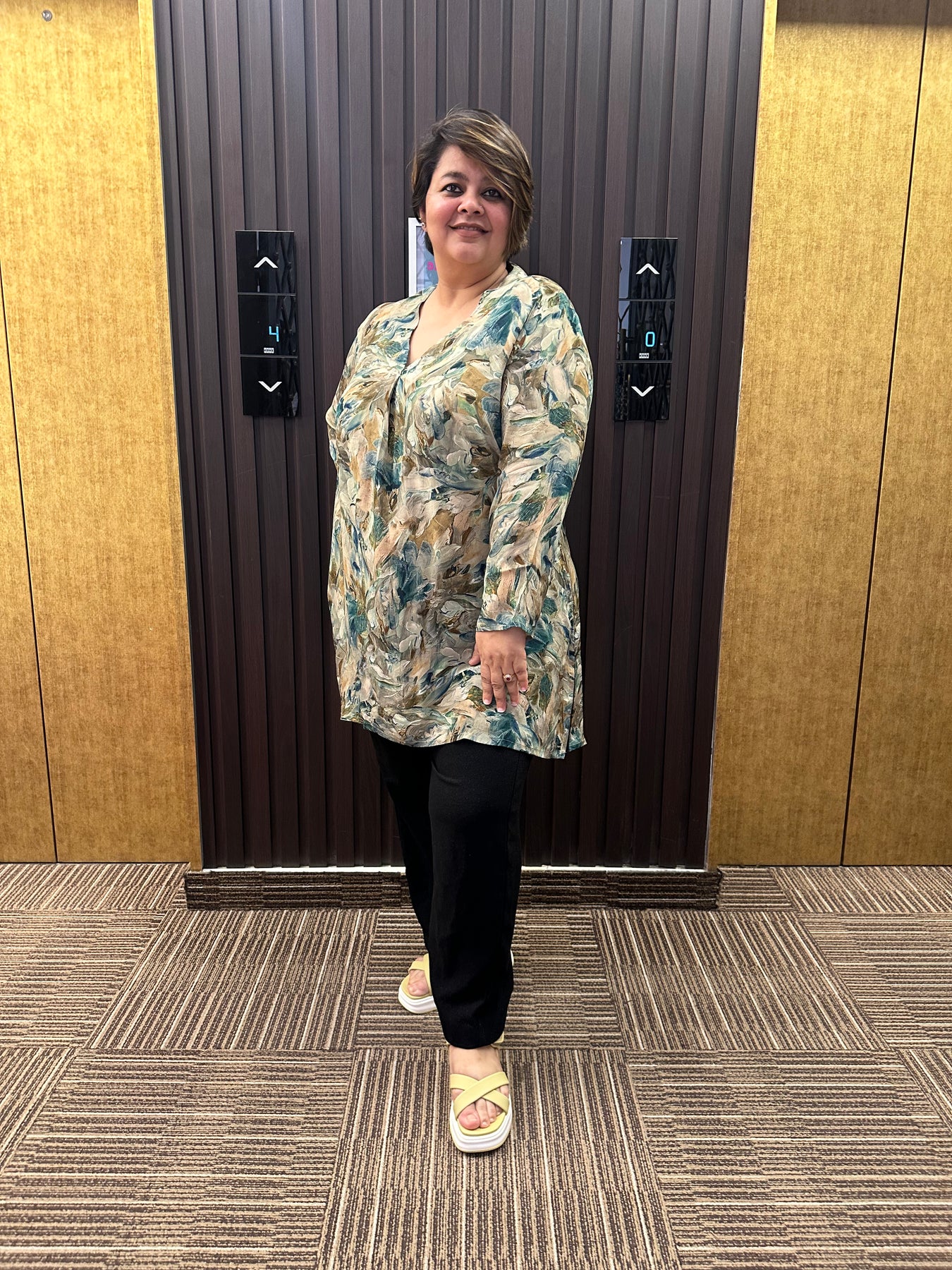 Regular price Rs. 4,550.00Effortless elegance meets everyday comfort with our plus-size viscose crepe tunics. Crafted from lightweight, breathable crepe with a soft drape, these tunics flatter every curve while keeping you cool and stylish. Perfect for pairing with leggings, trousers, or palazzos, they offer versatile wear for work, travel, or casual outings.