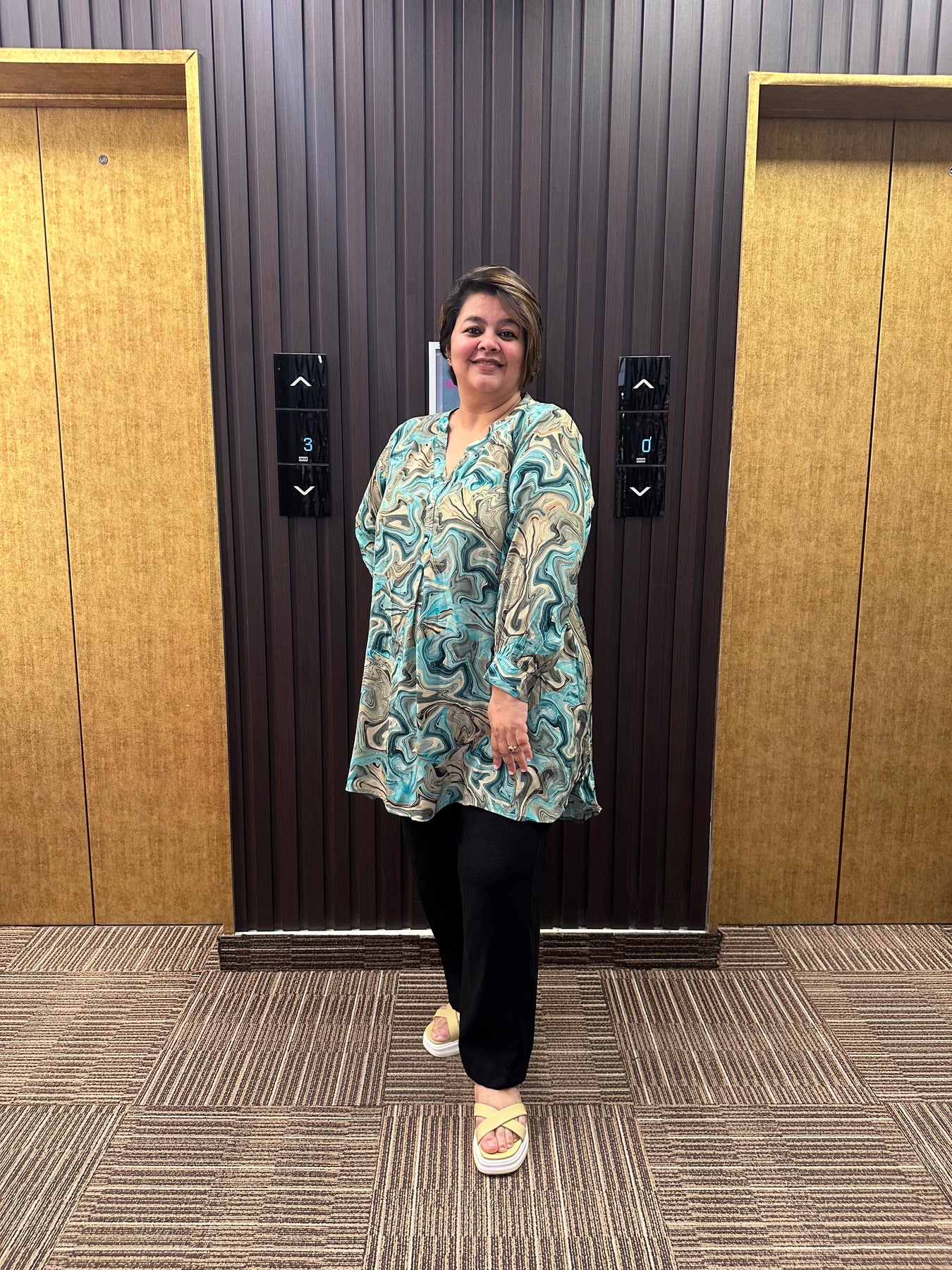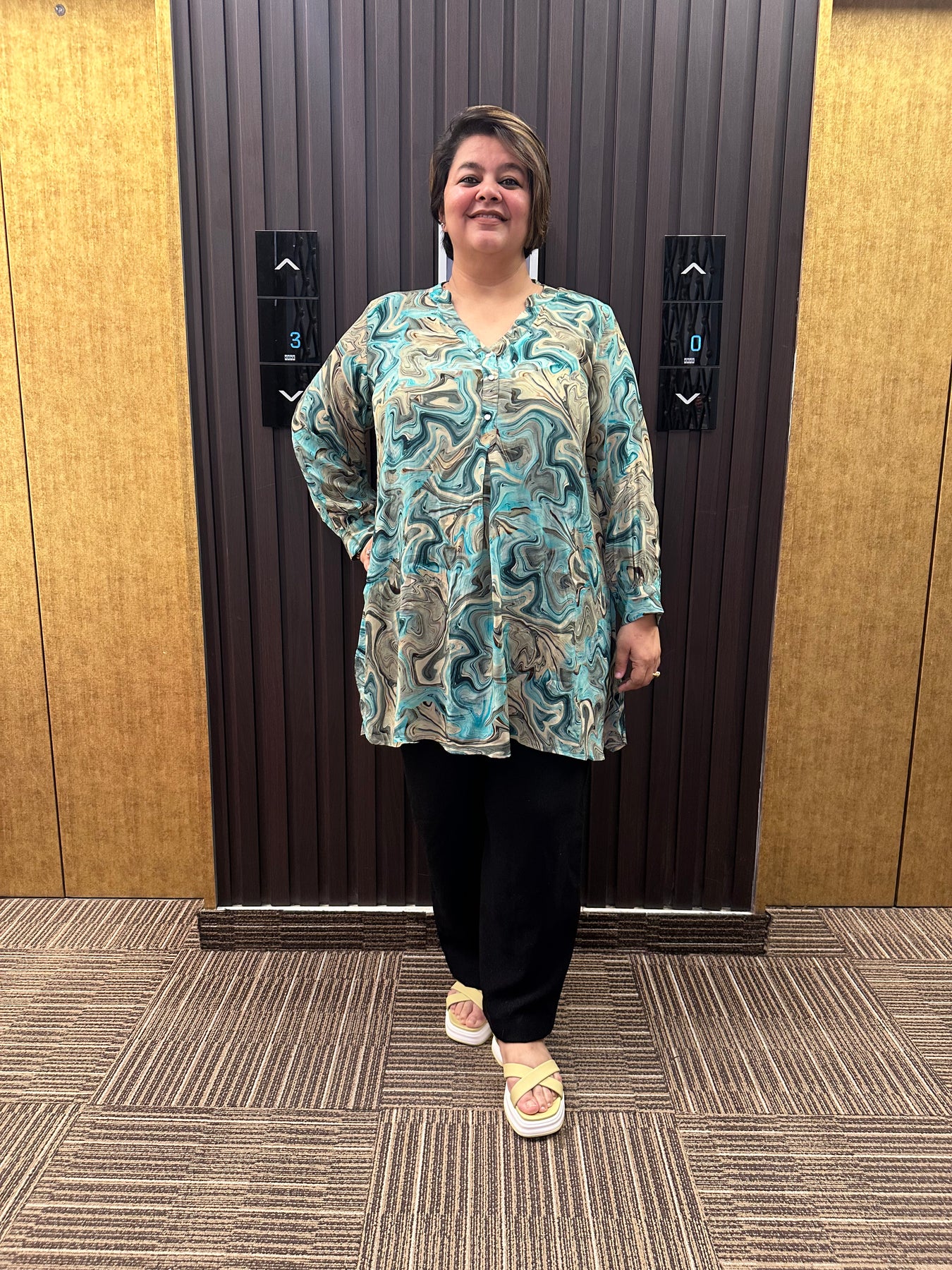 Regular price Rs. 4,550.00Effortless elegance meets everyday comfort with our plus-size viscose crepe tunics. Crafted from lightweight, breathable crepe with a soft drape, these tunics flatter every curve while keeping you cool and stylish. Perfect for pairing with leggings, trousers, or palazzos, they offer versatile wear for work, travel, or casual outings.
