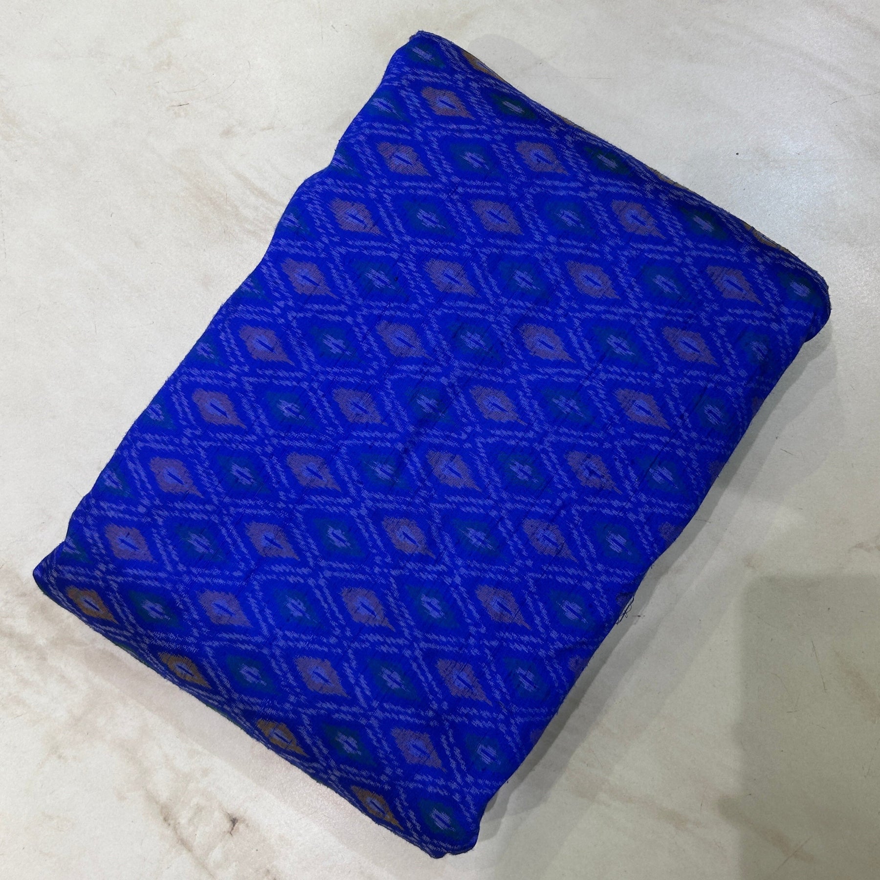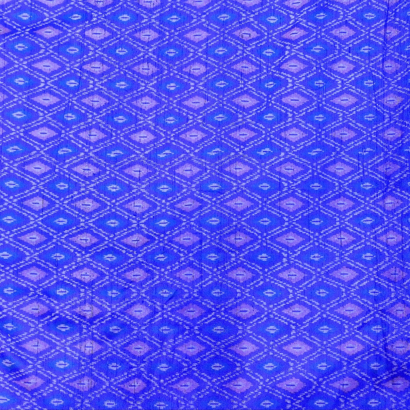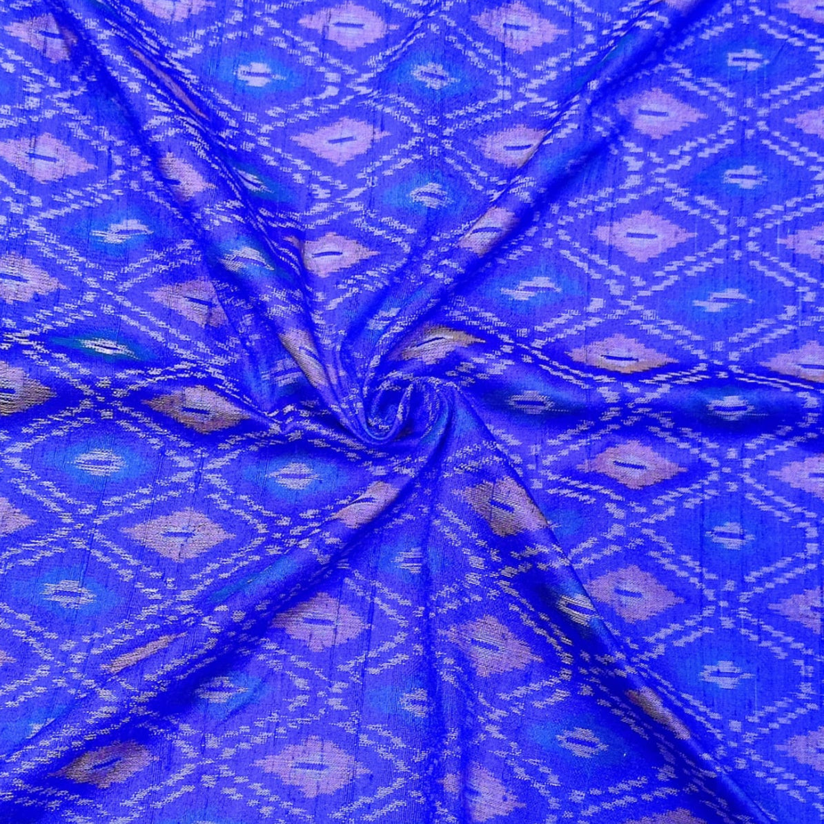 Bright Royal Blue Base Ikat Weave On Pure Raw Silk Fabric