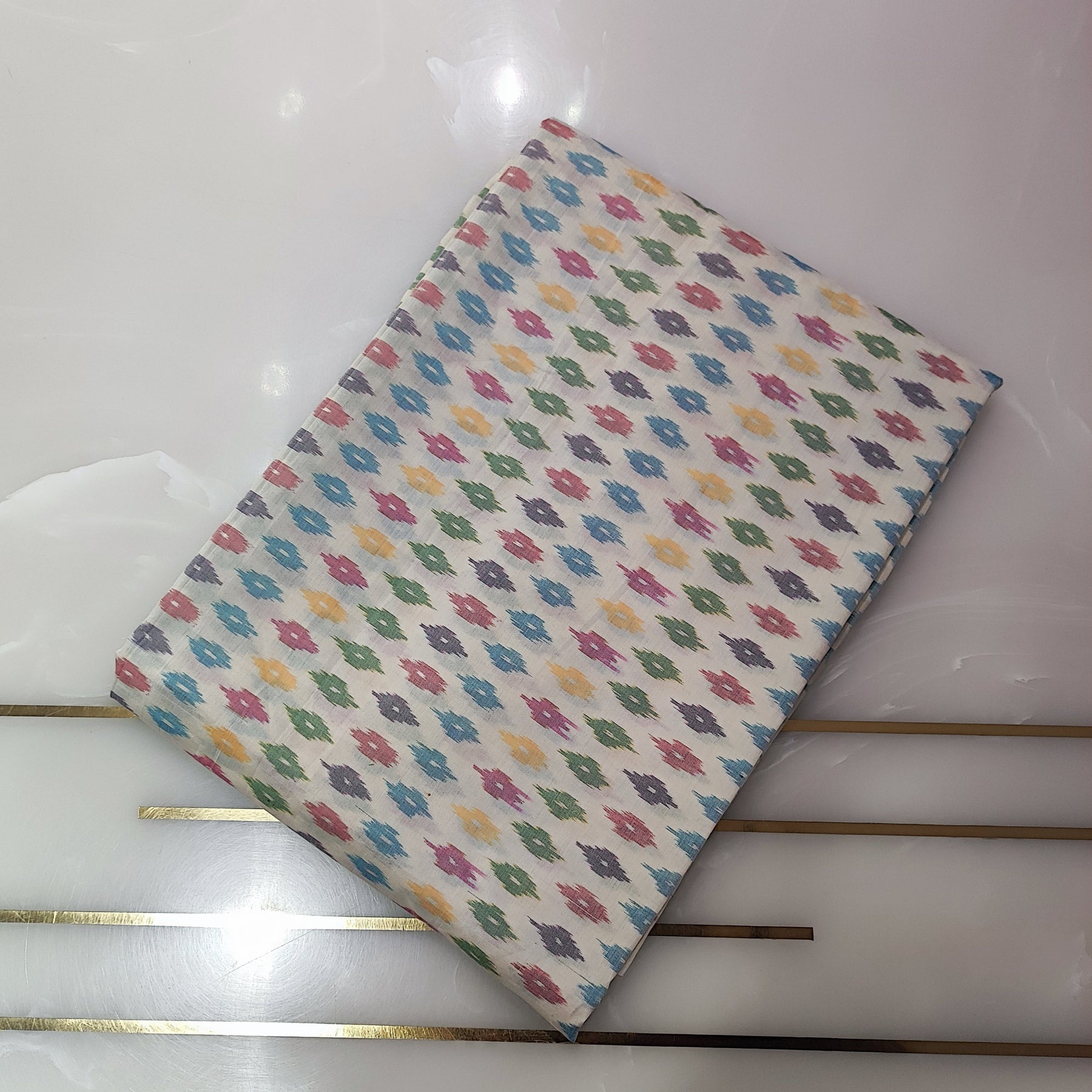 A silk-cotton blended fabric woven using the Ikat technique, known for: